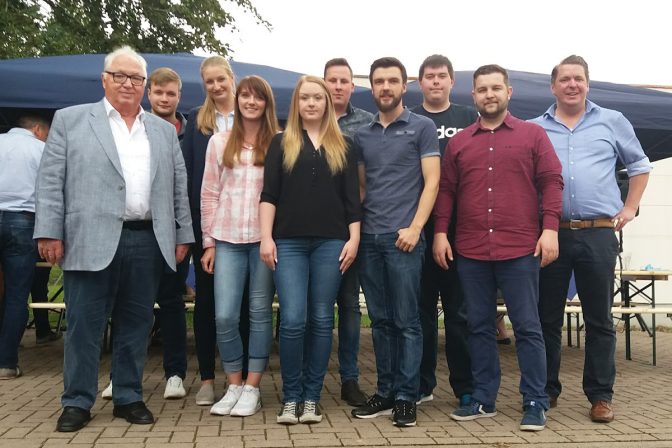 Acht Absolventen in vier Ausbildungsberufen Einen schönen Grund zum Feiern gab es am 14. Juli bei MEYER-JUMBO Logistics. Acht „Ex-Azubis“ feierten zusammen mit einigen Kolleginnen und Kollegen den erfolgreichen Abschluß ihrer Ausbildungszeit. Auf Einladung der Geschäftsleitung wurde pünktlich um 16 Uhr der Grill angeworfen, um mit leckeren Wurstchen und dem einen oder anderen Kaltgetränk, die…
